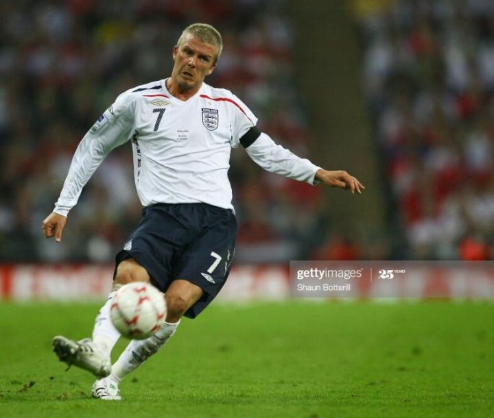 2006年世界杯,贝克汉姆穿着蓝狮猎鹰8出战,英格兰队在小组赛表现出色,小组第一出线,在八分之一决赛淘汰厄瓜多尔,贝克汉姆一脚圆月弯刀拯救英格兰。但是在和葡萄牙的四分之一决赛中,小贝被提前换下,英格兰最终在点球大战惜败。也结束了自己的第三次世界杯之旅,世界杯结束后,贝克汉姆宣布不再担任英格兰队队长。