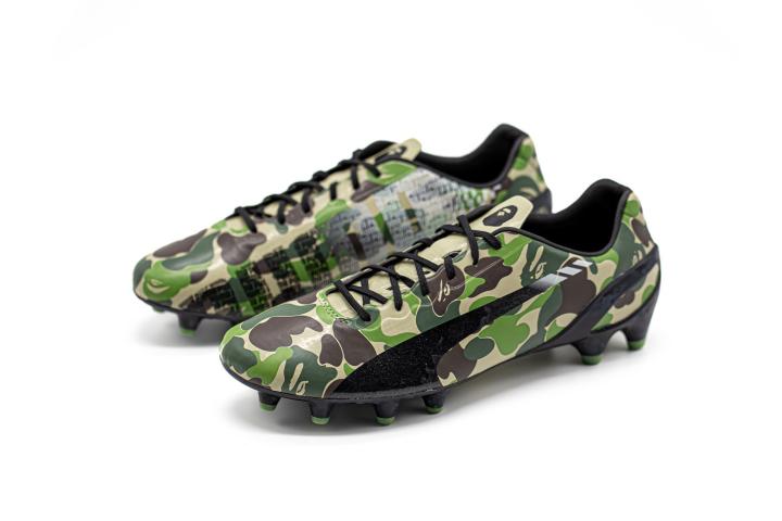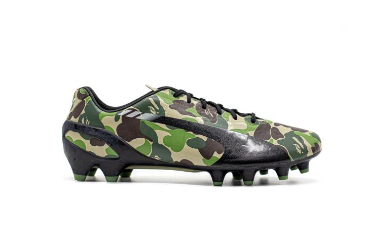 而图片展示的evoSPEED 1.2 BAPE足球鞋,是PUMA在2014年与潮流品牌BAPE、COLETTE、ALIFE、KITH联合推出的四款联名球鞋中的一款。别看现在PUMA,乃至各大品牌频繁与潮流、时装品牌合作,当年推开折扇大门的,还是PUMA!