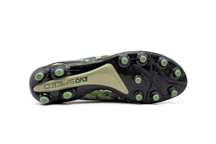 2012年4月,英超赛场上出现了一双带着黑白伪装色的足球鞋,这就是PUMA的全新速度战靴evoSPEED 1 CAMO,evoSPEED系列也正式掀开了PUMA速度战靴的新篇章。evoSPEED 1 CAMO使用了当时足球鞋产品非常少见的,常出现于新款汽车上市前测试车的Razzle Dazzle伪装,也开启之后几年PUMA在新球鞋发布前都推出CAMO伪装限量版的先河。