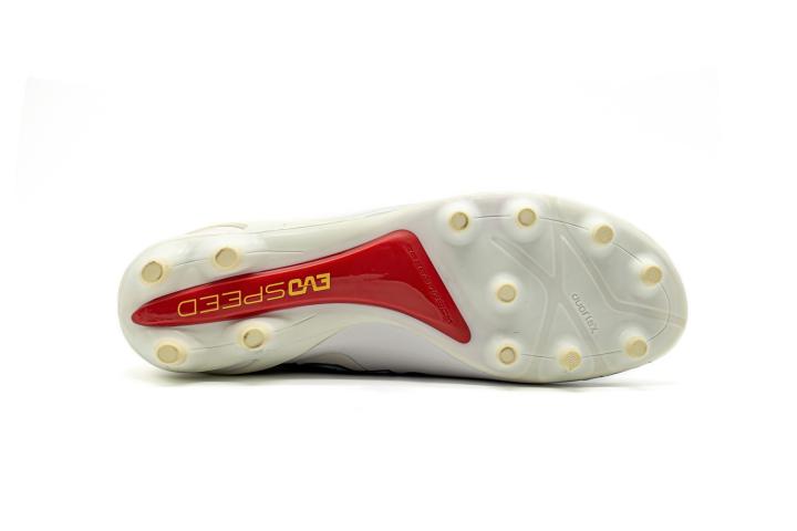 说回速度战靴PUMA evoSPEED 1本身,这款球鞋保持了v系列简单的结构,同时使用柔软人造纤维材料来打造鞋款,大底方面推出了带有duoflex科技、Speedtrack科技的新FG底。没有非常“牛”的设计,但以优秀的包裹、触感与支撑,收获不少速度型球员的喜爱。