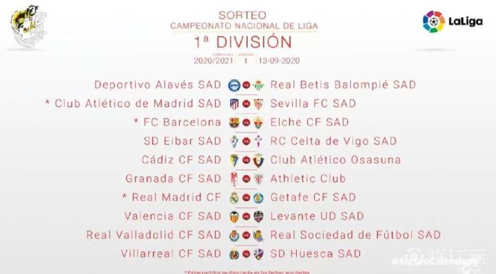 新赛季赛程正式出炉!首轮我们将在主场对阵奥萨苏纳,9月13日西甲新赛季,我们不见不散!