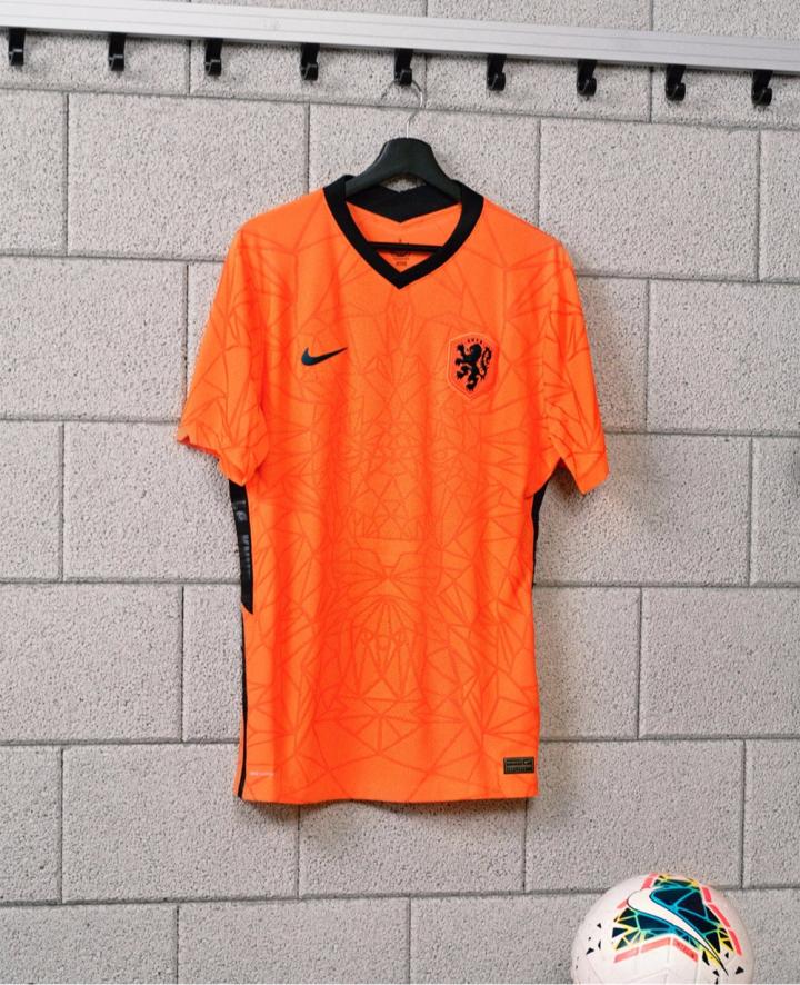 除了以全新针织工艺融入球衣中的狮子头像外,全新荷兰国家队主场球衣的V领身体两侧的透气条带均采用黑色设计,勾勒出球衣的整体轮廓。透气条带上加入荷兰足协缩写“KNVB”。带有黑色细节的橙色球裤与球袜令荷兰国家队全新主场形象更为完整。