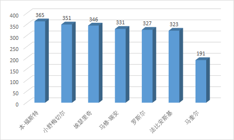 到了本赛季,瓦尔迪倾向于团队配合的技术特点依旧非常明显,他在出场的33场比赛中一共只完成了19次过人,排名球队第10位,同样没有办法进入英超联赛前120名。即便在莱斯特城神奇夺冠的2015~2016赛季,最终夺得银靴奖的瓦尔迪也仅仅只完成了39次成功过人,排名英超联赛第63位。