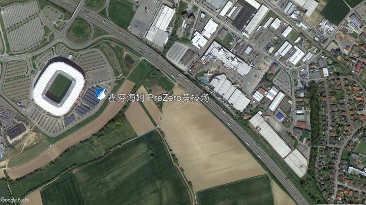 霍芬海姆俱乐部则位于辛斯海姆小镇,也因此其昵称为“霍村”。这座小镇不仅有霍芬海姆俱乐部,在俱乐部东部就还有一座汽车与技术博物馆,这座博物馆令人瞩目的是展出了很多飞机,包括著名的超音速客机——协和式飞机,从卫星地图上便可看到。霍芬海姆的主场原本根据所在地区命名为莱茵-内卡球场,现在根据赞助商命名为PreZero竞技场。