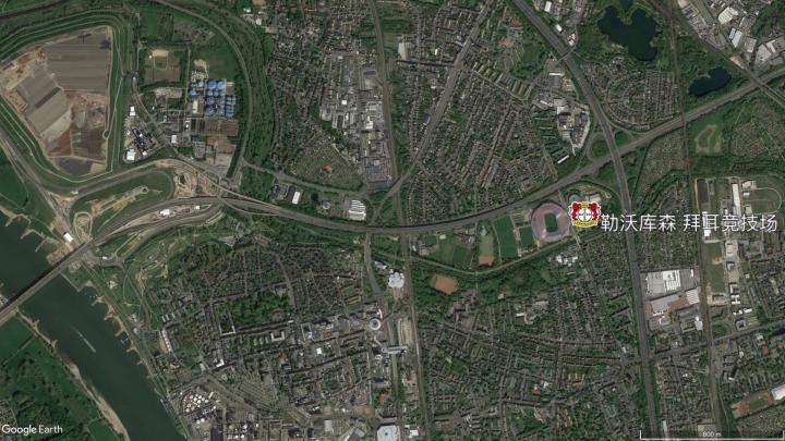 莱茵河东岸的勒沃库森拜耳球场