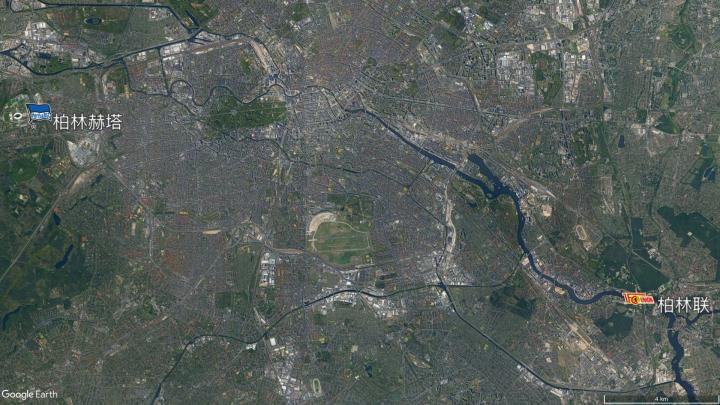 和巴伐利亚州一样有2支德甲球队的是柏林,其中柏林赫塔位于柏林西北,在冷战时期属于西柏林;东柏林的则是柏林联,位于柏林东南郊的施普雷河北岸。相对来说,柏林赫塔的主场奥林匹克体育场比柏林联的老林务所畔体育场距离市中心(博物馆岛)更近一些。