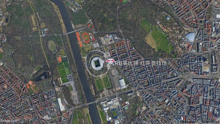 原东德领域内的另一支德甲球队是萨克森州莱比锡市的RB来莱比锡,但这是一个在2009年新成立的俱乐部,在东德时期并不存在。莱比锡地处盆地之中,三条河流在此交汇,RB莱比锡的主场——红牛竞技场即在城西的白鹊河东岸。值得一说的是,红牛竞技场建立在原东德的中央球场之内,红牛竞技场因此也被称为“球场中的球场”。