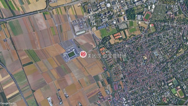 顺美茵河向西南而行,在美茵河与莱茵河的交汇处,莱茵兰-普法尔茨州的首府和最大城市,美因茨即位于此地。美因茨也有一支德甲球队——美因茨俱乐部(德甲俱乐部几乎都和城市同名),俱乐部的主场欧宝竞技场位于城西的郊区,周围被农田包围。球场大多位于城市远郊也是德甲俱乐部的一个特色,除此之外,欧宝竞技场也是德甲第3个汽车公司冠名的球场(另外2个是大众汽车球场、梅赛德斯-奔驰竞技场),在五大联赛中无出其右,这也说明德国汽车工业非常发达。