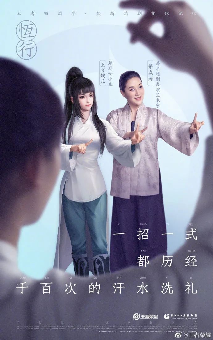 甚至于部分英雄皮肤,研发团队也赋予了其价值观与故事。例如2019年周年庆所推出的“梁祝”皮肤,就讲述了“上官婉儿”成为越剧团女小生演员后,努力学习扮演越剧中梁山伯的故事。皮肤制作过程中得到了中国戏剧家协会副主席茅威涛的指导,以数字化的形式演绎出了越剧中的梁祝故事。