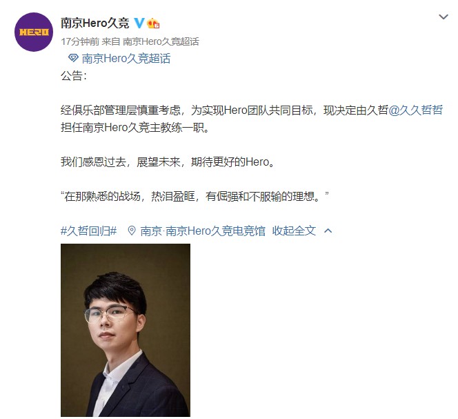 久哲回归,重新担任南京Hero久竞主教练,征战KPL秋季赛腱鞘炎玩家 @懂球帝2020-09-21 17:20【久哲回归,重新担任南京Hero久竞主教练,征战KPL秋季赛】久哲回归,担任南京Hero久竞主教练一职。期待重返赛场的久哲教练,期待更好的南京Hero久竞。展开更多