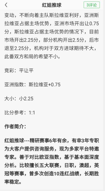 红姐推球昨日公推顺利拿下,不过原本应该是全收,结果由于红姐的笔误,写成了斯拉维亚+0.75,导致部分老铁们迷茫了,到底是斯拉维亚-0.75,还是中日德兰+0.75?不过仔细看红姐分析的话,还是更倾向些双方和局,最终斯拉维亚0:0与中日德兰双方和局收场,另外如果走竞彩和大小分的话,都是可以稳稳拿下!