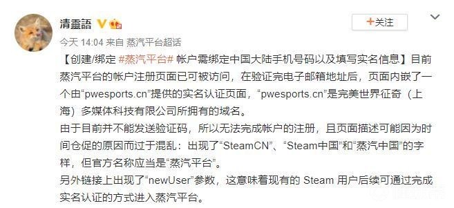 目前该注册页面的描述信息还未统一,有“SteamCN”、“Steam中国”、“蒸汽中国”三种叫法,可能还没正式准备好,但官方名称应当是“蒸汽平台”。另外链接上出现了“newUser”参数,这意味着现有的Steam用户将可通过实名认证的方式进入蒸汽平台。此外,蒸汽平台将会强制设置语言为“sc_schinese”即中文,不能设置其它语言偏好。不过“sc_schinese”这一设置现在还没有实装。