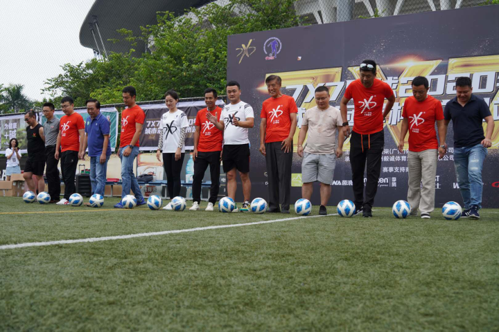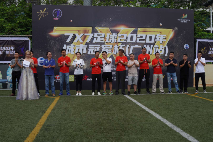 2020年9月26日,7x7足球2020年城市冠军杯(广州站)在天河区黄村奥体爱奇足球场隆重揭幕。原中国足协副主席、广东省体育局局长-董良田先生、7X7足球创始人邹高平先生、前中国国家队球员-胡志军先生、广州毅诚体育经纪服务有限公司总经理-殷富诚先生、7X7足球秘书长-杨晓晨女士、广州艺人制造公司董事长-邓伟刚先生、广东省业余足球协会会长-邓国华先生、前中国国青队守门员-朱继征先生、画景饮料有限公司广州总经理-卢建明先生、卡拉宝饮料广东省市场经理-张晓兵先生等人悉数到场,见证这重要时刻。