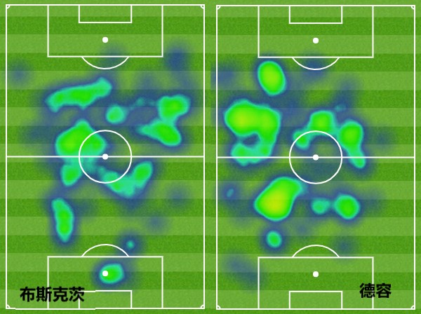 下半场比赛,德容也有多次进入禁区等待接应,但没有一次等来队友的传球。
