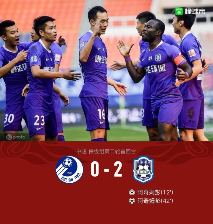 泰达2-0大连,张翀失误送礼、阿奇姆彭双响,博阿滕进球被吹