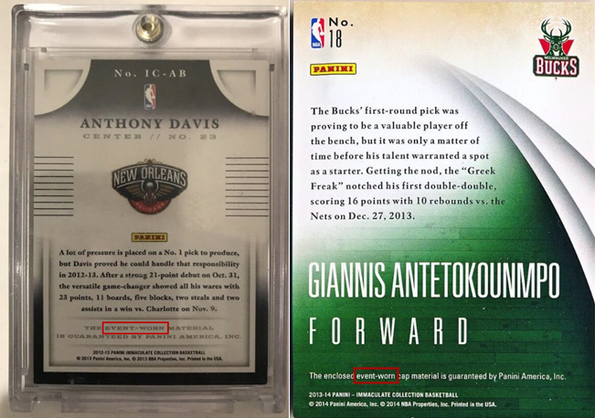 说到帕尼尼球星卡,藏家们可能首先可能会想到的是各种签名卡、折射卡等。除此之外,一些装了实物的卡片,也算是球星卡的一大特色了。