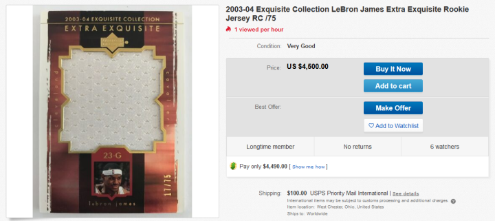 在成功搞定老流氓之后,UDA又把这样的商业模式成功复制到了跟詹姆斯的合作上。到现在为止,詹姆斯的签名藏品价值已经开始逼近乔丹的藏品,部分藏品价格甚至已经超过了乔丹的藏品。