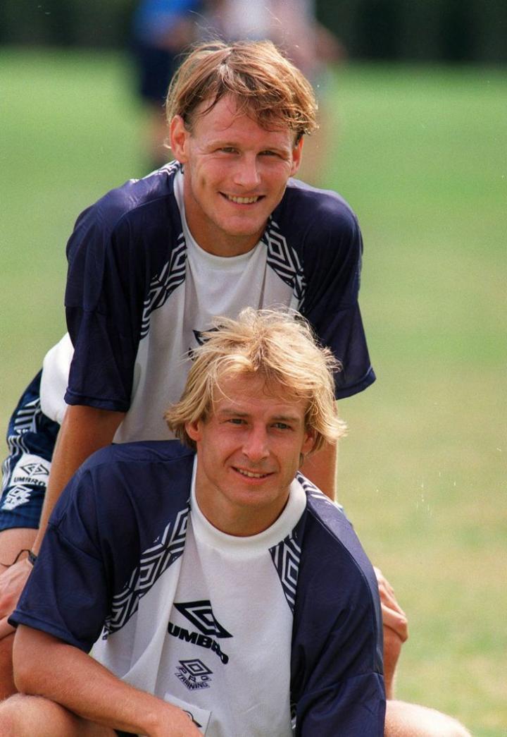 (图)当时同为热刺效力的谢林汉姆和克林斯曼