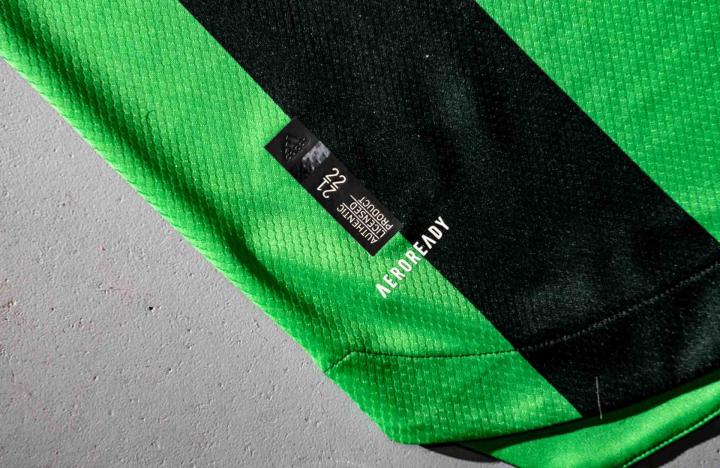 垂直绿黑条纹图案也衬托齐了俱乐部的队徽,队徽的图案是两棵连根共生的橡树——代表着俱乐部和所在的城市——合则强。这款由阿迪达斯设计制造的2021年球衣,通过独特的亮绿色和黑色展现了奥斯汀足球俱乐部的活力和创造力,同时也是向风靡全球过百年的经典的垂直条纹球衣设计致敬。