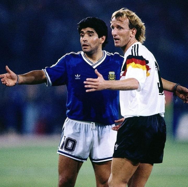 与老马同岁的布雷默在个人社交媒体晒出一张在1990年世界杯决赛对阵阿根廷时和马拉多纳的同框照,并写道:“世界足球悲伤的一天,安息吧,迭戈-马拉多纳。”