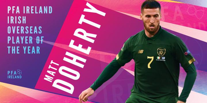 最佳海外爱尔兰球员:马特-多尔蒂(Matt Doherty)。多尔蒂现年28岁,是一名右后卫,出自波希米亚人青训,曾效力于希伯尼安,伯里,狼队,现在效力于英超球队托特纳姆热刺,本赛季在联赛中上场6场并有1个助攻。