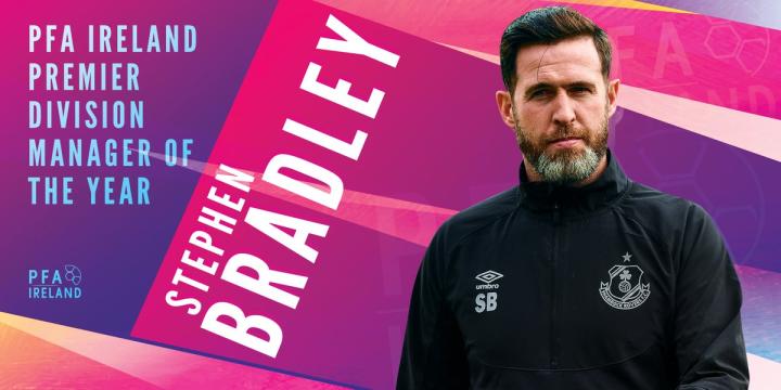 爱尔兰超级联赛最佳主教练:史蒂芬-布拉德利(Stephen Bradley)。布拉德利自2016年担任沙姆洛克流浪主教练至今。本赛季布拉德利率领的沙姆洛克流浪完成了赛季不败的壮举,并帮助沙姆洛克流浪拿下第18个联赛冠军。