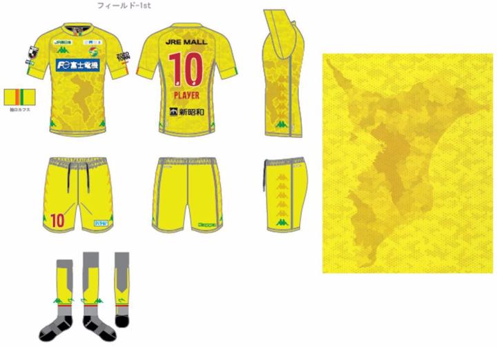 JEF联市原·千叶新赛季主客场球衣首次将俱乐部所在的日本千叶县地图应用于球衣设计中,由无数六边形图案组成的千叶县地图出现在球衣的正面与背面,展现俱乐部与千叶县牢固的关系,同时六边形也寓意着团结一致所迸发出的强大力量。主场球衣以传统的荧光黄色作为主色,向人们展现多灾多难的千叶所拥有的活力和生命力。客场球衣则首次启用受大自然中万物所启发的卡其色,如同大地般的色彩同样展现出生活在这片土地上的万物所拥有的活力与生命力。
