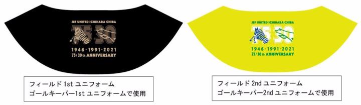 此外,2021年是JEF联市原·千叶足球俱乐部成立30周年,同时也是俱乐部前身——古河电机足球俱乐部成立75周年的重要时刻,因此新赛季球衣衣领内加入作为JEF联市原·千叶象征的秋田犬以及作为古河电机足球俱乐部象征的斑马图案,并分别附上数字“30”与“75”,以此纪念这一里程碑时刻的到来。