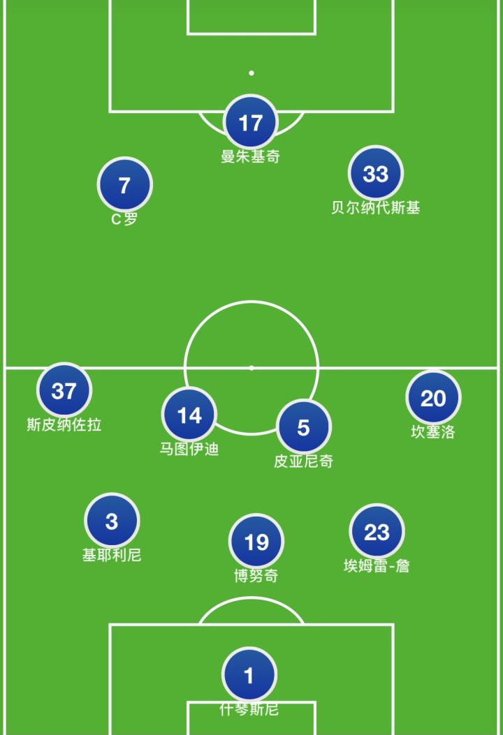 19尤文,阿莱格里用埃姆雷-詹在右中卫、右中前卫、右后卫之间摇摆保证弹性,这是尤文逆转马竞的基础;