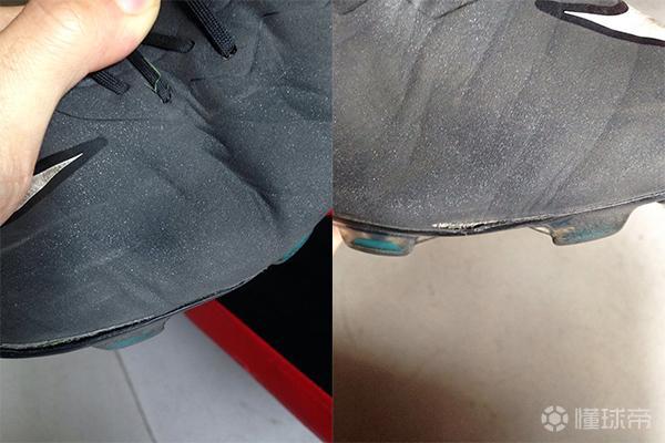 顶级有一个别出心裁的一体化鞋舌设计(见上图Vapor),无论你是什么脚型,都能告别鞋舌跑偏,据说也有利于球鞋触感,只是据说。次顶为普通鞋舌。两者均为内置TPU,且后跟比较柔软,后跟锁定都挺一般,顶级稍胜一筹。柔软的后跟也许会提升舒适度,但保护性值得质疑,这个问题将在之后单独讨论。