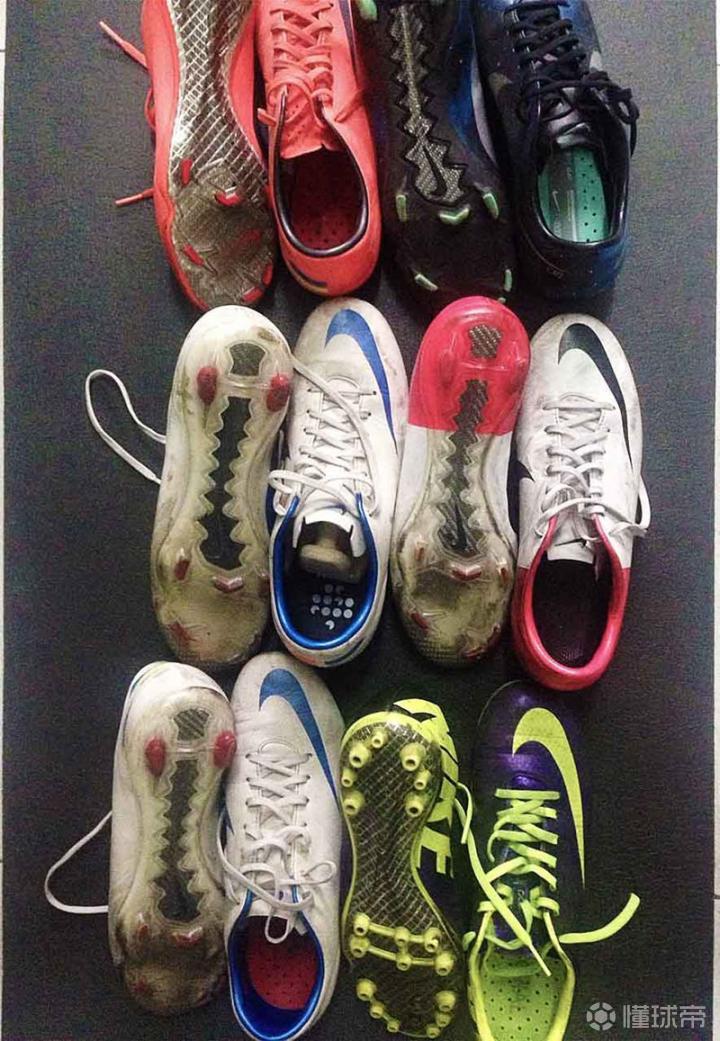(8-10代顶级各一双,9代次顶1双,8代次顶3双,文中鞋钉对比中的黄色VeloceⅡ是旧图,脚瘦所以与之缘浅,实物已被朋友顺走。感谢队友的黑色CR7出镜)