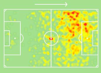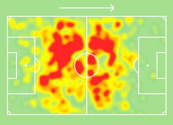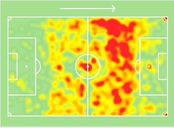 上面这张图片是麦克托米奈在2019-2020赛季的热点图,这位苏格兰球员基本上能够覆盖己方右路大片区域,无论在进攻还是防守端都能够为曼联带来巨大帮助。与此同时,我们不要忘记麦克托米奈可是一位身高达到1米93的中场,其具有明显优势的身高还是能够为曼联在高空球争抢方面带来一定的帮助。