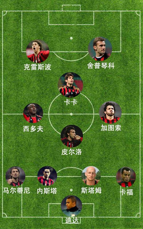 关于菱形中场阵型中的4名中场,不同主教练也有着不同的使用方法。我们拿意甲豪门AC米兰为例,身体对抗能力较弱但出球能力极强的皮尔洛没有出现在进攻核心的前腰位置,反而来到更多象征着防守拦截的后腰位置。