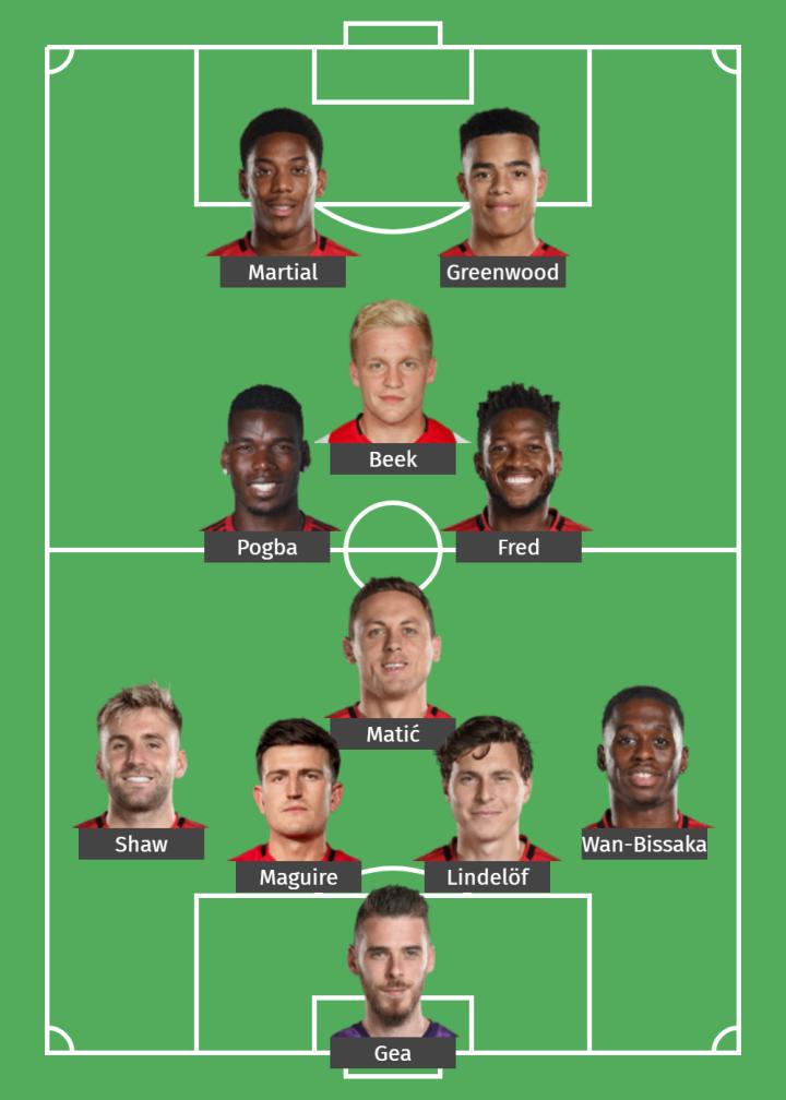 相较于B费在前腰位置的无可替代,曼联在中场其他三个位置可选用的人手就非常丰富了。截止到目前,曼联在其他三名中场的人员选择中已经使用了三种完全不同的站位:马蒂奇单后腰、博格巴居左、弗雷德居右;马蒂奇单后腰、范德贝克居左、弗雷德居右;弗雷德单后腰、博格巴居左、麦克托米奈居右。
