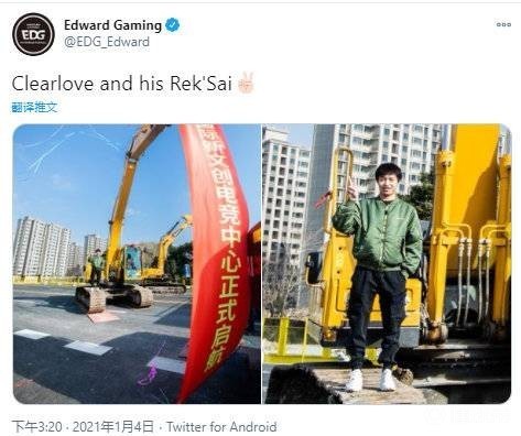 EDG官方晒照:Clearlove和他的“挖掘机”皮肤