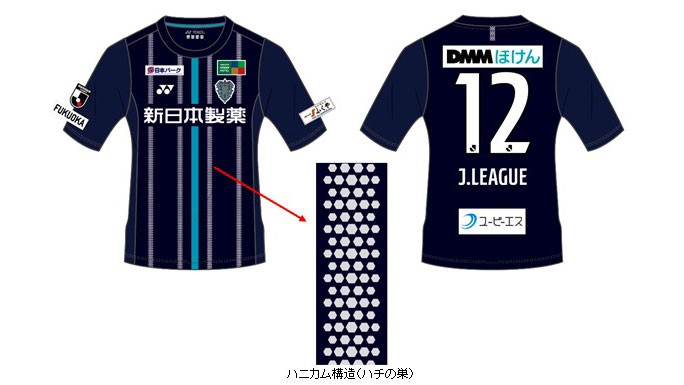 福冈黄蜂全新主客场球衣分别以海军蓝色与银灰色为主色,位于球衣正中的天蓝色竖条纹代表球队即将开启的新赛季征程,同时也象征球队在场上无法被撼动的坚强意志。天蓝色竖条纹两侧各加入两条由六边形蜂窝所组成的竖条纹,分别代表俱乐部、球迷、赞助商以及福冈市民,以此展现球队希望与更多人建立深厚的联系,并成为植根于这座城市且受人喜爱的俱乐部。