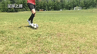 然后,这个技巧的最后一步是在我们拉球之后,立刻用我们另一只脚做一个反方向小角度的内切。