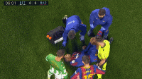 第7分钟,阿劳霍后场大脚出球时不慎扭伤脚踝,随后无法坚持比赛被德容换下。第17分钟,皮亚尼奇撞墙做球,登贝莱推射被挡出底线。第20分钟,明格萨右侧传中被曼迪拦截。