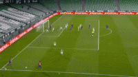 第24分钟,贝蒂斯快速反击,博尔哈右路传中,胡安米后点快速插上头槌顶偏。第28分钟,阿尔巴左路45度角传中,朗格莱近距离头槌顶偏错失良机。