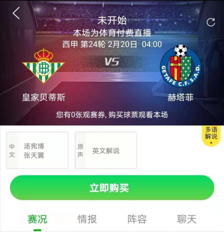 2.20日凌晨鄙人在爱奇艺体育和汤哥解说西甲第24轮贝蒂斯VS赫塔菲,欢迎各位收看