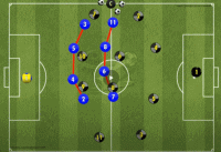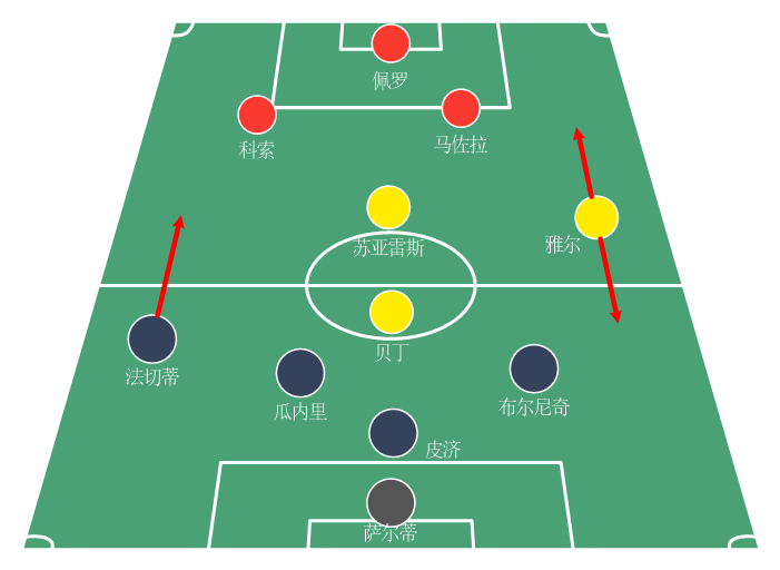 采用自由人、右边锋回撤防守、左后卫参与进攻是这种战术最大三个特点。