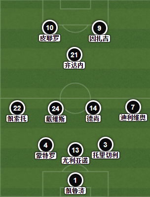 PS:上图阵型虽然也是3-5-2,但与之后孔蒂在尤文和切尔西打造的现代三中卫体系有着天壤之别,有时间在给大家介绍吧