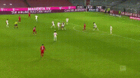 别看穆夏拉只有17岁,他的场上大局观以及处理球合理性早已“少年老成”。在本赛季德甲第10轮面对RB莱比锡的比赛中,穆夏拉在比赛第74分钟策动了一次进攻,并且最终形成破门。如上图所示,当穆夏拉在禁区弧顶附近拿到皮球后,并没有强行远射,而是在多人包夹下将皮球分至边路无人盯防的科曼脚下,后者拿球后从容调整随后传中助攻穆勒破门。