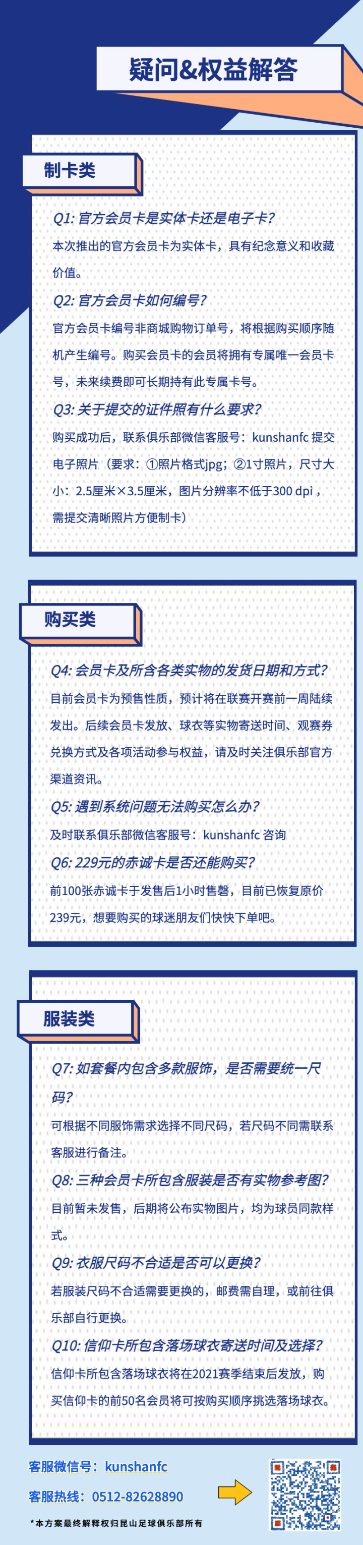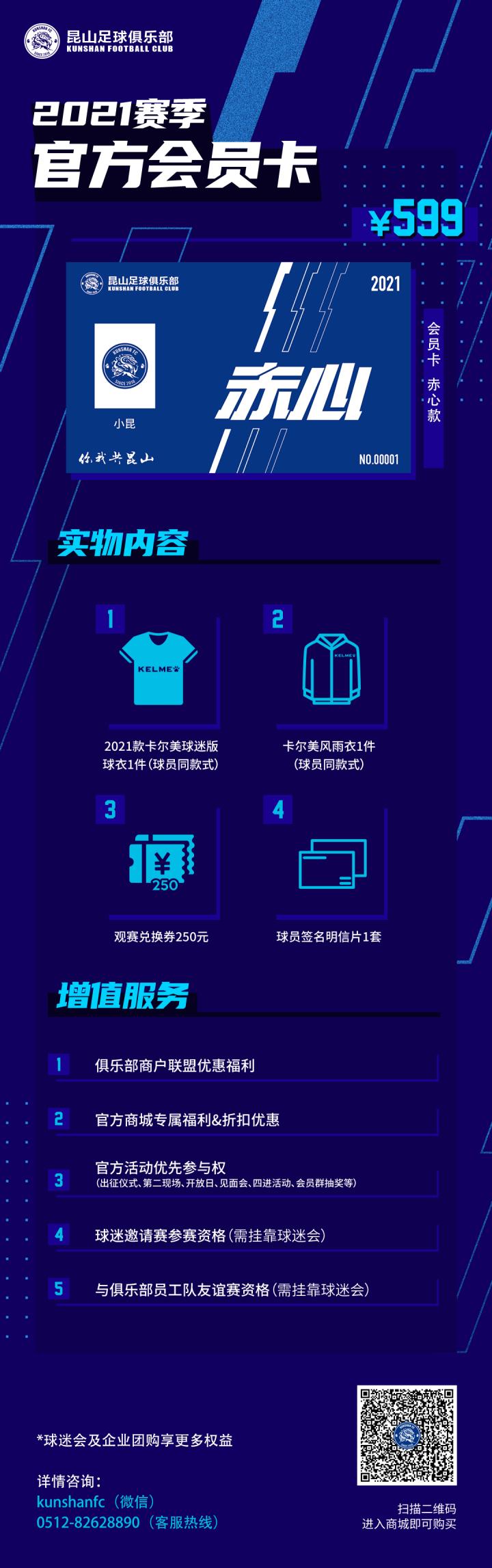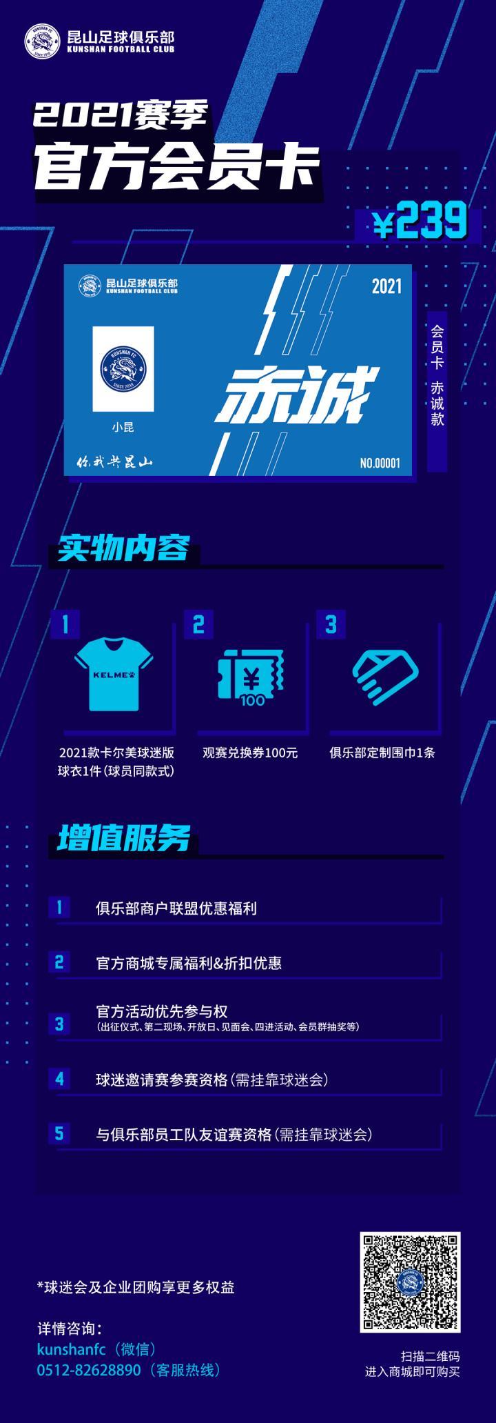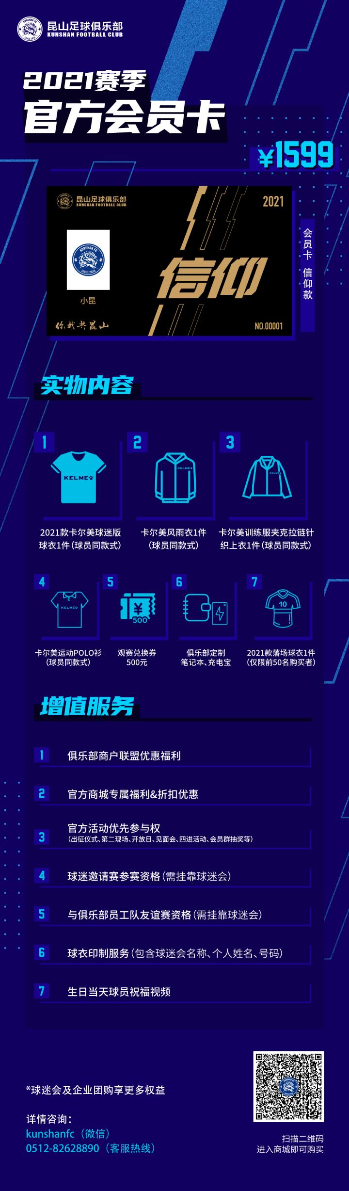 7、所有购买官方会员卡的球迷,均可联系俱乐部微信客服号:kunshanfc 登记进入会员群,享受更多福利。