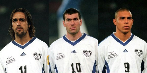 1998世界明星首发:帕柳卡(意大利),泽马利亚(巴西),恩亚蒂(南非),耶罗(西班牙),邓加(巴西),温特(荷兰),鲁伊·科斯塔(葡萄牙),齐达内(法国),维阿(利比里亚),巴蒂斯图塔(阿根廷),罗纳尔多(巴西)。替补:绍伦姆(尼日利亚),中田英寿(日本),若昂·平托(葡萄牙),格雷罗(西班牙),赫尔南德斯(墨西哥),达沃·苏克(克罗地亚),比埃霍夫(德国),萨拉斯(智利)。主教练:佩雷拉(巴西),温格洛斯(斯洛伐克)。