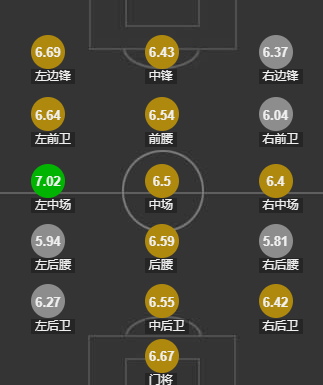 场均评分6.40,排名德甲第18