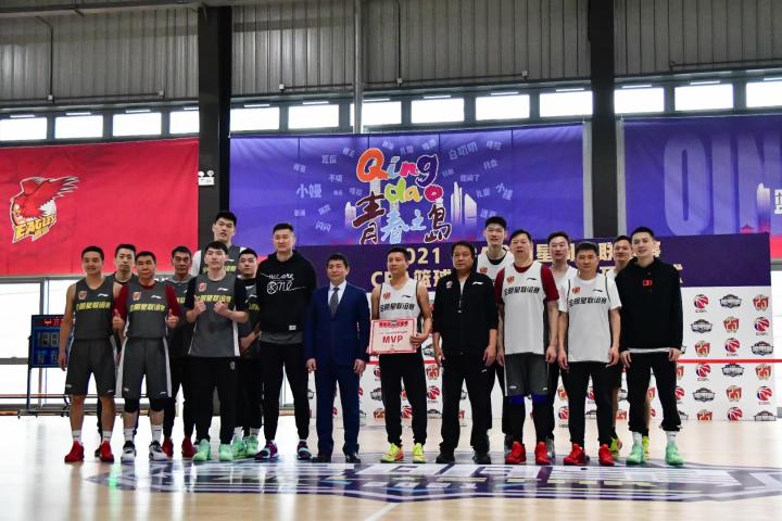 (经过激烈的比拼,青岛国信海天篮球俱乐部总经理张北海获本场全明星联谊赛的MVP)