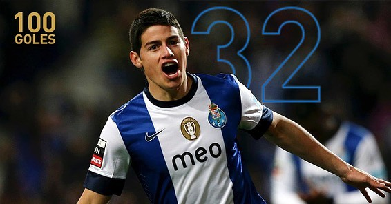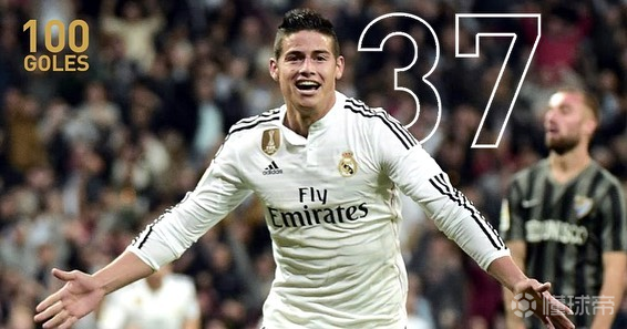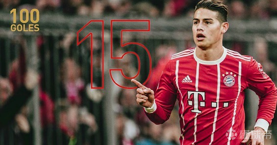 纪录|哈梅斯-罗德里格斯旅欧生涯100球分布 波尔图:32球 摩纳哥:10球 皇马:37球 拜仁:15球 埃弗顿:6球