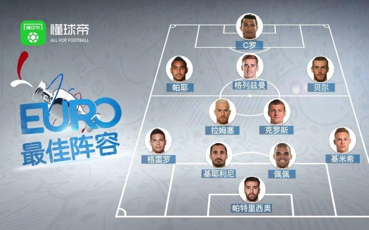 列队欢迎!懂球帝2016年欧洲杯最佳阵容出炉
