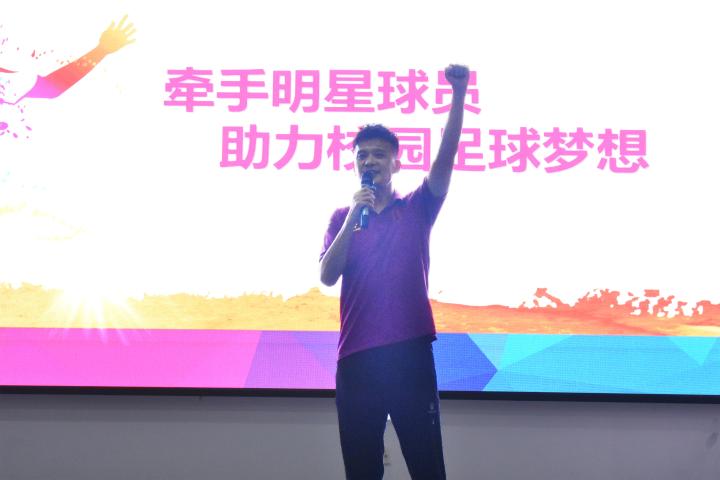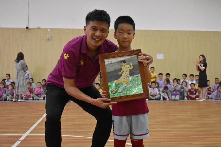 本次活动的开始,何杨首先向西川实验学校小学部的小球员们分享了自己的职业足球生涯的经历,并期望小球员们认真努力地训练、时刻准备着;要珍惜身边的朋友、尊重师长,成为一个团结友爱的人;何杨还鼓励小球员们在遇到挑战的时候要迎难而上、永不言弃。